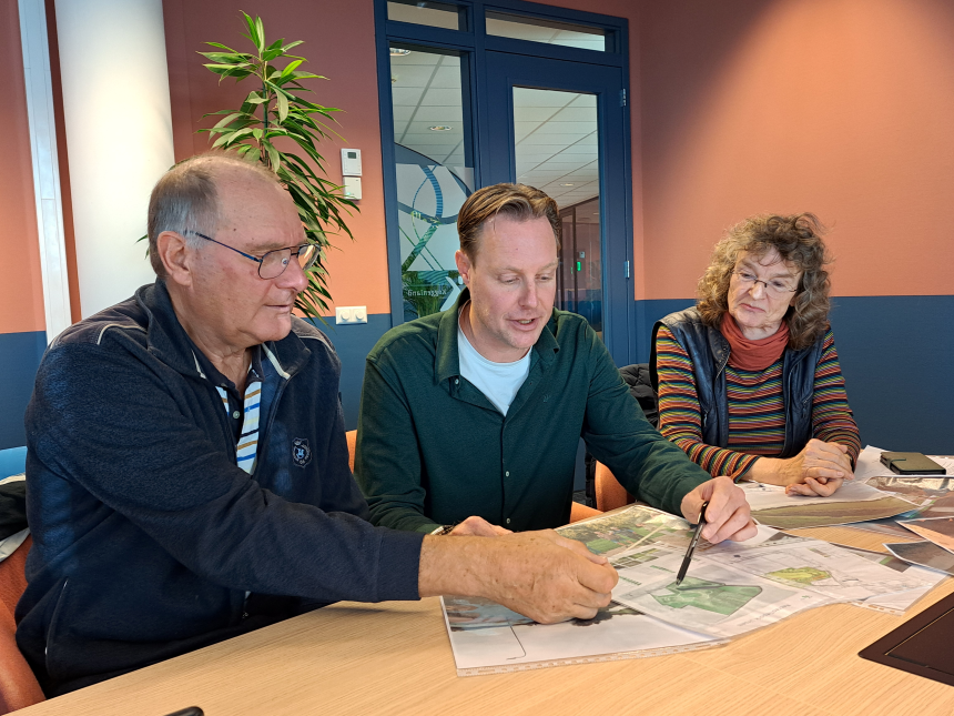 Het Doe-team Groener Ursem – bestaande uit negen mensen (omwonenden, Huttendorp, IJsclub Ursem en betrokken Ursemmers) – werkte nauw samen met de gemeente. Ontwerper Bauke Goodijk maakte een eerste schets, later verder uitgewerkt door HB Adviesbureau. In 2022 legde het Doe-team, aan alle omwonenden van het gebied de vraag voor: Groen voor jullie huis: hoe staan jullie daar tegenover? “We wilden weten: vinden mensen dit een goed idee?” vertelt Karin. “87 procent van de buurtbewoners was vóór. Dat gaf veel vertrouwen.” Wel werden na twee informatieavonden en een digitale inspraakronde aanpassingen gedaan. “We hebben bijvoorbeeld de ingang van het park verlegd en hoge bomen geschrapt,” zegt René Otter van de gemeente Koggenland. “De schaalgrootte maakte het makkelijk om te schuiven. Alleen het uitzicht op de dijk konden we niet behouden.”